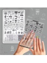 Grande plaque de stamping de la marque Taki Da de 10 x 15 cm en métal brillant avec support en plastique. Chaque plaque contient plusieurs motifs de différentes sortes illustrant un thème précis. Les gravures sont de haute qualité et les designs modernes et tendances.