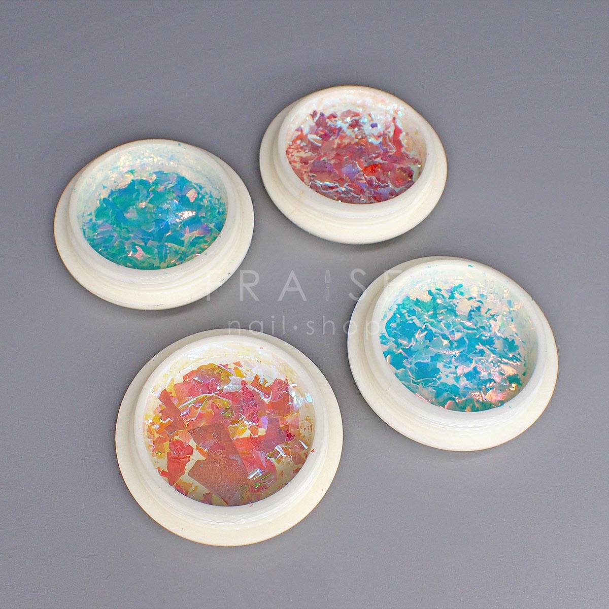Ce lot contient 4 pots de Glitter flakes de différentes teintes pour les ongles. Les glitter flakes sont des "flocons de paillettes" scintillants de différentes tailles. À utiliser pour vos Nail Art.