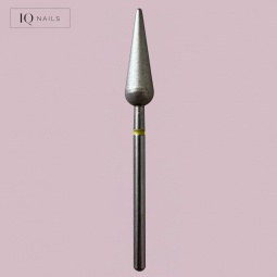 Fraise en diamant forme flamme grain jaune (très doux) de la marque IQ Nails. Diamètre de la tête : 6 mm.