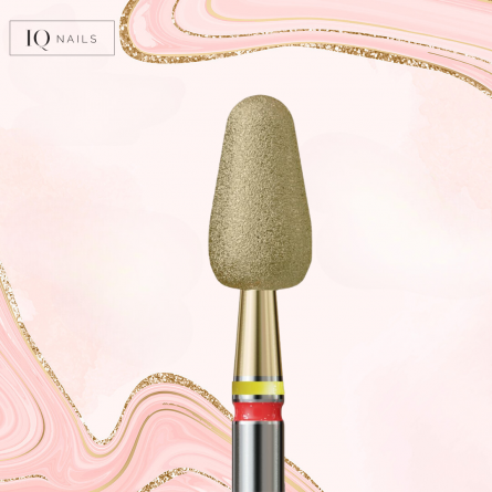 Fraise en diamant buffer 2 en 1 de la marque IQ Nails. Pour une performance renforcée et une durée de vie optimisée, IQ Nails a crée des embouts à double-grain en ajoutant du grain de diamant très fin entre les grains de diamant fin. C'est pourquoi cet embout est à double-grain : rouge (doux) et jaune (très doux). L'embout est également recouvert d'une couche de revêtement NANO en zirconium dorée protectrice qui allonge la durée de vie des fraises et assure également une meilleure biocompatibilité pour les personnes allergiques aux métaux. Cette fraise permet de polir et gommer la peau en toute sécurité. On peut également l'utiliser comme un buffer pour matifier la plaque naturelle de l'ongle, et retirer les restes de matière. Diamètre de la tête : 6 mm.
