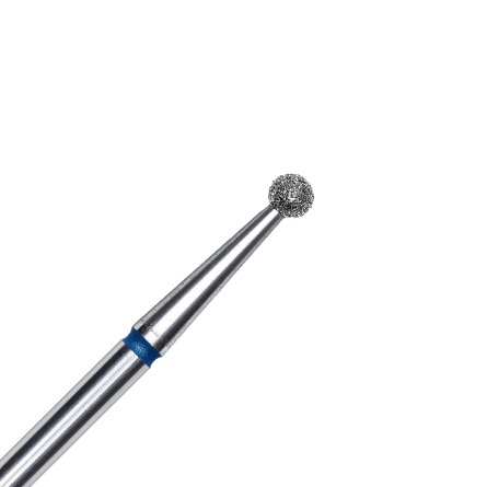 Fraise en diamant en forme de boule de la marque Staleks. Grain bleu (moyen) parfait pour l'ongle avec beaucoup de cuticules. Diamètre : 0,25 cm. S'utilise pour la coupe des cuticules sans pince à envies en technique de manucure russe. Elle permet également de polir la peau et de retirer les callosités sur le pourtour de l'ongle. Convient pour la manucure et la pédicure.