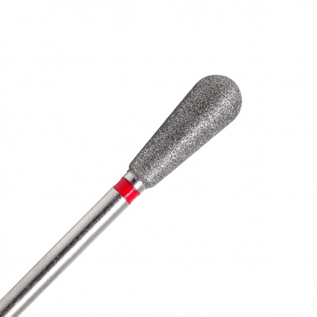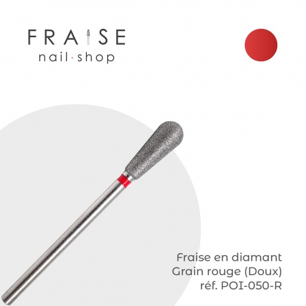 - Fraise en diamant- Forme Flamme- Grain Rouge (doux)- Diamètre : 2,5 mm- Longueur tête : 9 mm- Retirer les cuticules