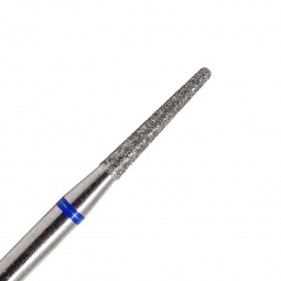 Fraise en diamant forme conique. Grain bleu (Moyen) parfait pour l'ongle avec beaucoup de cuticules. Diamètre : 0,16 cm. Longueur tête : 1cm. S'utilise pour la préparation de la plaque de l'ongle et pour éliminer et nettoyer les cuticules. Cette fraise permet d'optimiser l'adhésion du gel à l'ongle naturel et d'éviter les décollements. Elle est idéale pour soulever les cuticules.