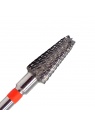 Fraise en carbure grain rouge (Doux) forme conique. Ne chauffe pas pendant la dépose et le ponçage. Diamètre : 0,5 cm. Idéale pour la dépose du vernis semi-permanent, du gel (en couche fine) ainsi que pour affiner la construction.