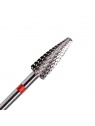 Fraise en carbure grain rouge (doux). Embout arrondi sécurisé. Ne chauffe pas pendant la dépose et le ponçage. Cet embout permet de retirer le vernis semi-permanent et le gel (fine couche) en douceur, et d'affiner la forme de la construction. Diamètre : 0,5 cm. Longueur tête : 1,3 cm.