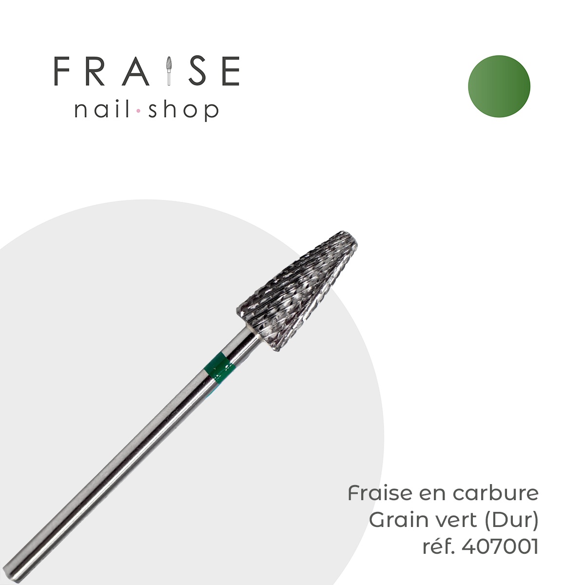 Fraise en carbure vert (Dur). Embout arrondi sécurisé. Ne chauffe pas pendant la dépose et le ponçage. Idéale pour la dépose du gel, de la résine et de l'acrygel, ainsi que pour affiner la forme de la construction. Diamètre : 0,6 cm