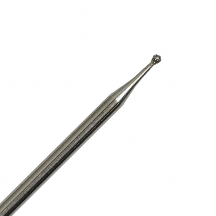 Fraise en diamant forme boule. Diamètre : 1 mm. Marque Purple. S'utilise pour la coupe des cuticules sans pince à envies en technique de manucure russe, pour enlever et nettoyer l’intérieur des cuticules ainsi que pour les callosités. Convient pour les mains et les pieds. Grain moyen.