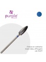 Fraise en carbone grain bleu (Moyen). Embout arrondi sécurisé. Marque Purple. Idéale pour la dépose du gel, de la résine et de l'acrygel, ainsi que pour affiner la forme de la construction. Diamètre : 6 mm et longueur tête : 15 mm.