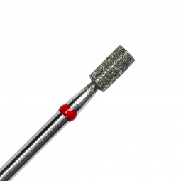 Fraise manucure Russe en diamant grain rouge (doux) forme cylindre. Marque Purple. Diamètre : 3,2 mm et longueur de la tête : 6,3 mm. S'utilise pour la préparation de la plaque de l'ongle, pour éliminer et nettoyer les cuticules ainsi que pour les callosités. Cette fraise permet d'optimiser l'adhésion du gel à l'ongle naturel et d'éviter les décollements. Convient pour les mains et les pieds.