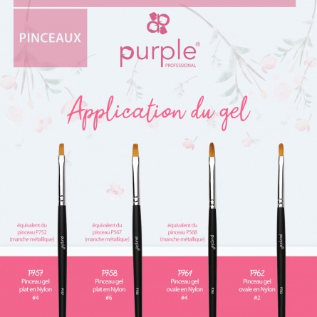 Pinceau plat et droit pour application du gel. Poils en nylon. Manche en bois. Ce pinceau est l'équivalent du pinceau P567 qui a un manche métallique.