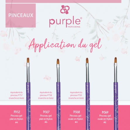 Pinceau plat et ovale pour application du gel. Poils en nylon. Manche métallique.