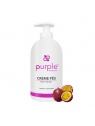 Crème pour les pieds parfumée aux fruits de la passion. Marque Purple. Flacon de 500 ml. Formulée à base de vitamines A et E et de beurre de karité. Laisse la peau douce et hydratée. Mode d'emploi : Appliquer quotidiennement sur vos pieds propres et secs, ou après l'utilisation du gommage pour les pieds.